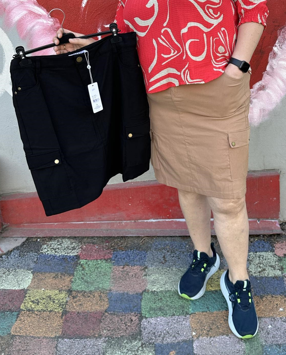 Kjempetøft skjørt med lomme nede på sidene. God stretch, og med bukse inni. 70%Viskose 25%Polyamid 5%Elastan