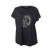 Beskrivelse Stilig svart T-skjorte med svart fronttrykk på brystet. Stilen har en avrundet hals og korte ermer. Laget av en luksuriøs blanding av viskose, nylon og elastan. Denne modellen er størrelse M. Mål for størrelse M: Halvt bryst: 68 cm Lengde: 73 cm 60 % Viscose /28 % Nylon/12 % Elastan |