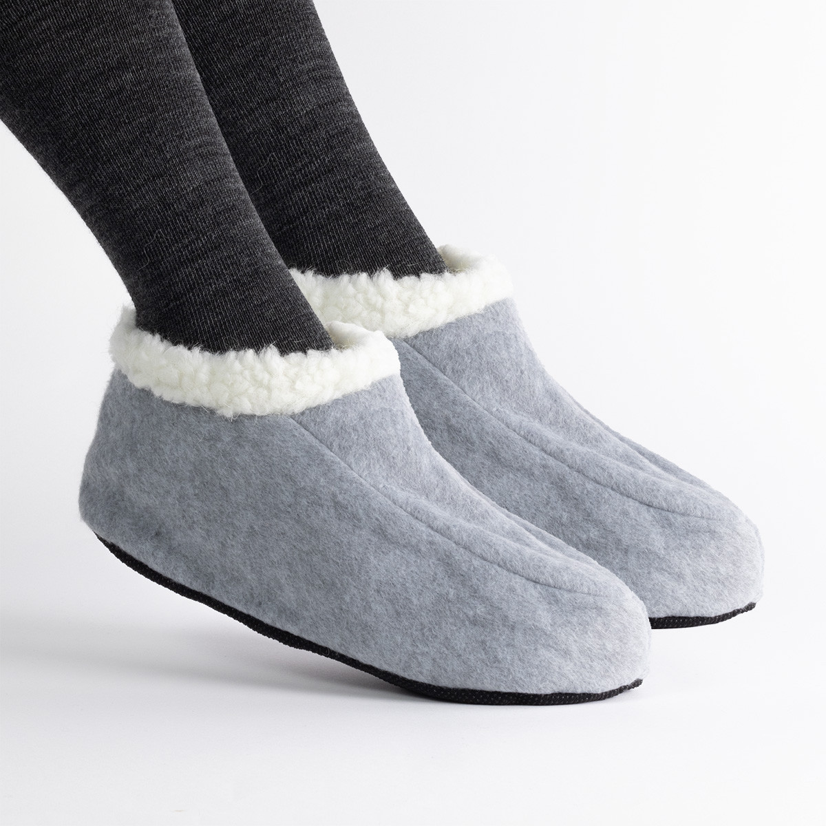 Beskrivelse Deilige tøffelsokker med fòr på innsiden i 100% ren ull og antiskli under hele sålen. Ullen føles myk og behagelig mot huden og puster godt. Den transporterer svette og fukt, og er naturlig lukthemmende. MATERIALE 100% Ull på innsiden 100% Polyester på utsiden VEDLIKEHOLD Maskinvask på ullprogram ved 30°C. Bruk ullvaskemiddel. Unngå tørketrommel. |