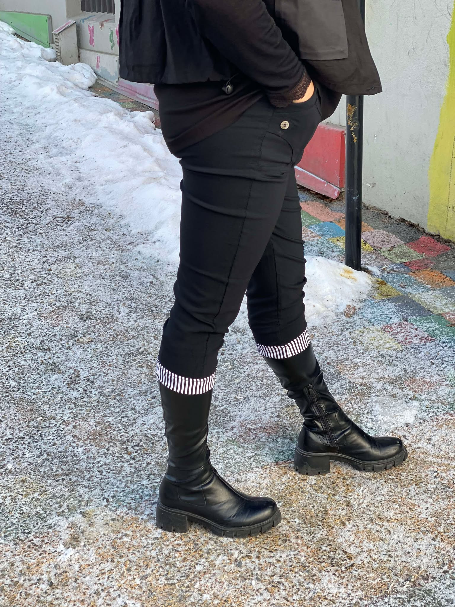 Beskrivelse Den populære CHERRY BERRY har nå kommet med en ny variant- men stretchen og den gode fasongen er den samme. Det nye er kanten nederst på beina som man har laget en kontrast med striper. 60% Bomull 35% Polyester 5% Elastan |