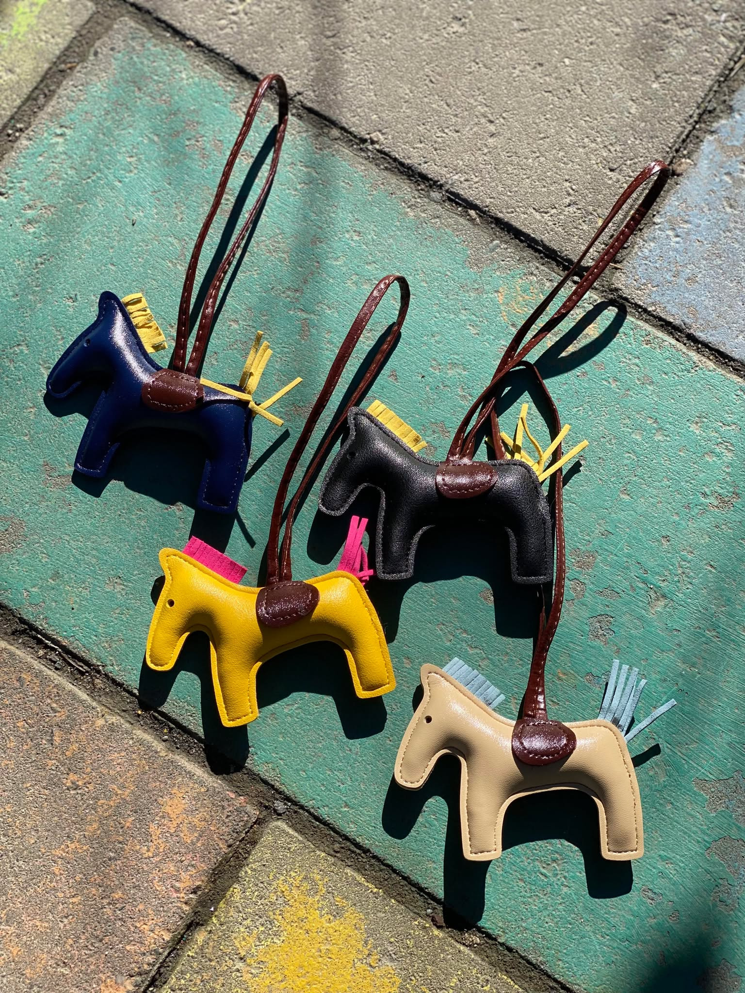 Beskrivelse En hest som man kan feste på fesken, eller andre plasser som den måtte passe. Veskepynt av forskjellige varianter og gjerne flere sammen er veldig populært. |
