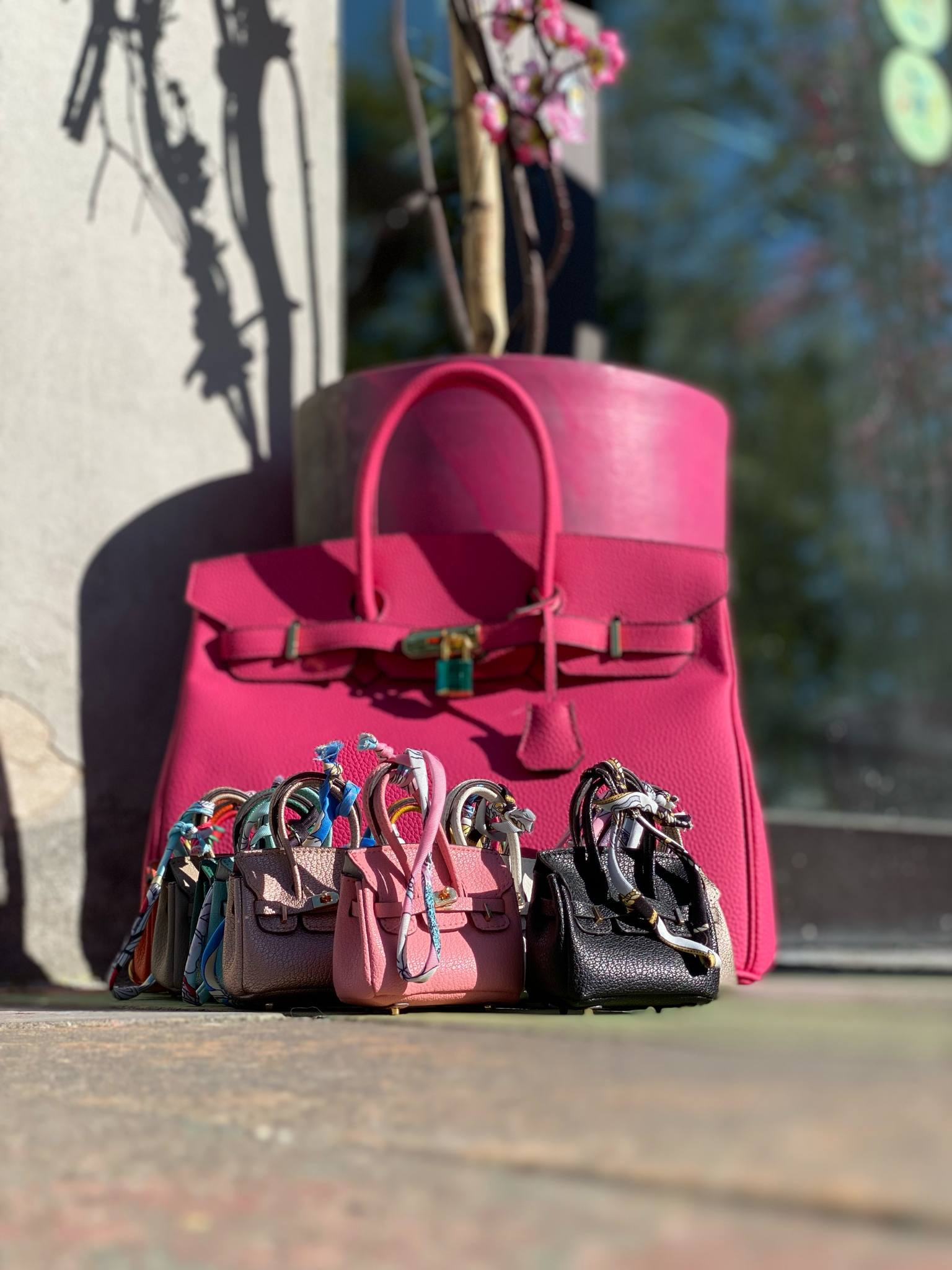 . Veskepynt, veske. Lengde 8cm, bredde 3,5cm, høyde 7cm pluss hank