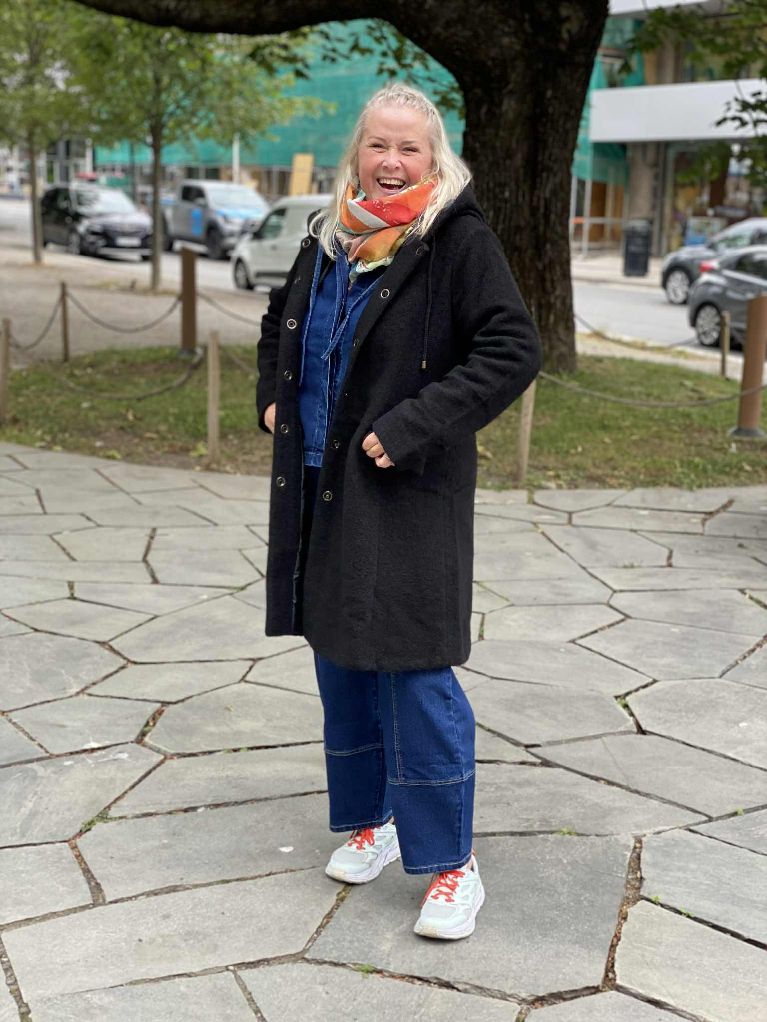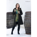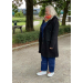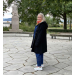 50% ULL 40%Polyester 10% Annet. Nydelig kåpe, figursydd, knepping og lommer.