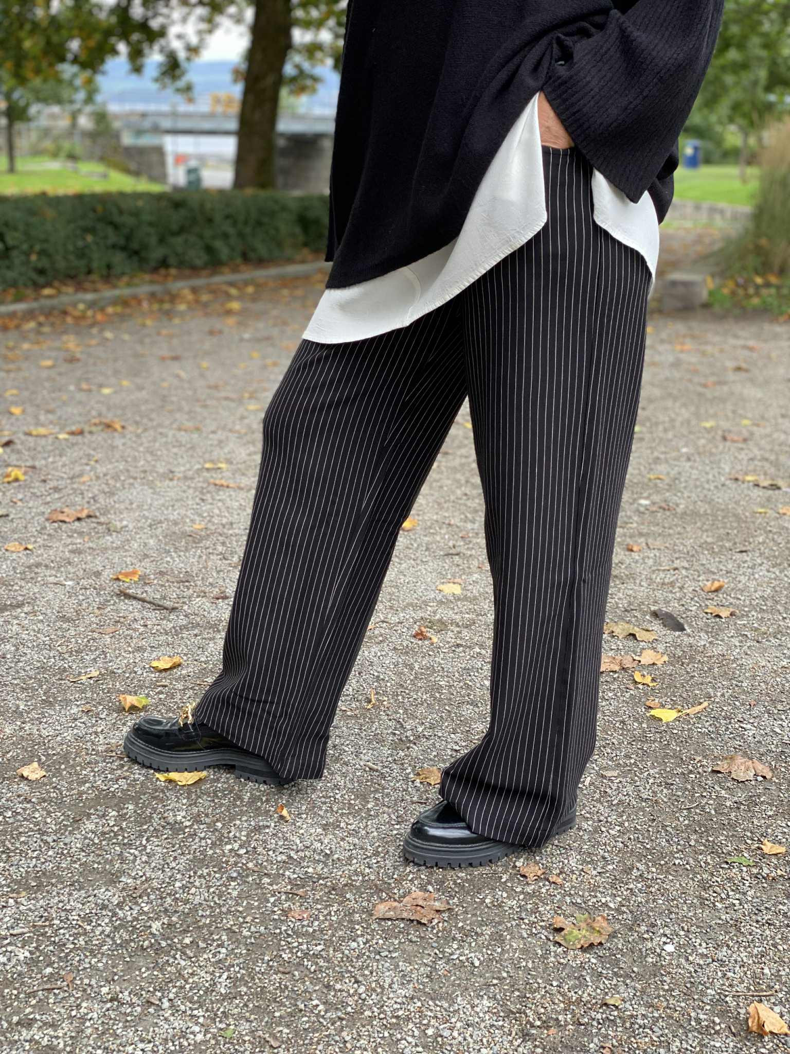 Beskrivelse Rålekker bukse fra LAURIE i modell: DONNA LOOSE ML Sort med smale striper. Elastisk midje. 67 % viskose (LENZING™ ECOVERO™), 27 % polyester, 6 % elastan |