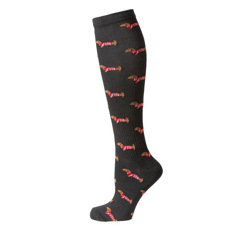 Beskrivelse Støttestrømpe med lett kompresjon 11–14 mmHG. Den spesielle strikkingen stimulerer blodstrømmen og forhindrer hevelse og tretthet i føtter og ben, og reduserer også risikoen for åreknuter og blodpropper. |