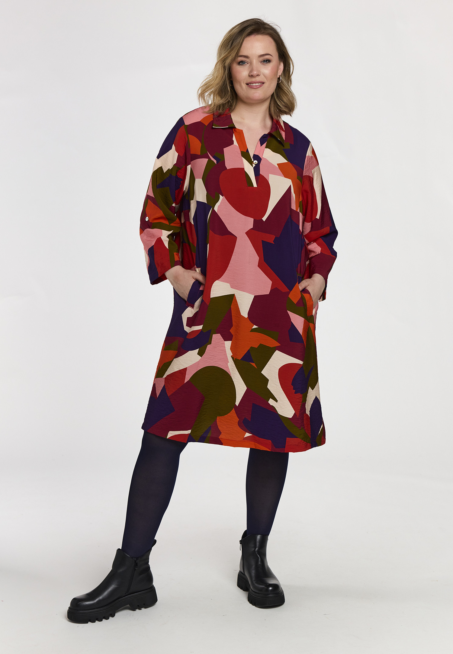 Beskrivelse En luftig tunika i viskoseblanding med V-hals og knappelukking. Snittet er løst og komfortabelt med 3/4-ermer og en elegant kant, noe som gjør modellen egnet for både tunika og lett kjole. Detaljer inkluderer: V-hals. 3/4-ermer. Løs A-fasong. Trykk i marineblå og lyse kontrastfarger. Kvaliteten er 85 % viskose / 15 % nylon, noe som gir en myk følelse og et naturlig fall. Mål for størrelse M: Halve brystvidde: 64 cm Lengde: 106 cm |