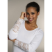 Ensfarget lang t-skjorte i polyesterblanding. Lange ermer med elastiske blondedetaljer. Rund hals. Denne modellen er 174 cm høy.