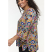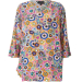 Beskrivelse En bluse i 100 % viskose med et fargerikt, sirkulært flerfarget trykk i blå, rosa, grønne og hvite nyanser. Modellen har V-hals og lange ermer. Den løse passformen og det myke materialet gir et avslappet og feminint utseende. Detaljer inkluderer: V-hals. Lange ermer. Løs, lett A-formet silhuett. Viskose med fargerikt trykk. En frisk og feminin bluse med lett struktur og komfortabel passform – ideell for både hverdagsbruk og vårlige antrekk. Mål for størrelse S: Halve brystvidde: 58 cm Lengde: 74 cm |