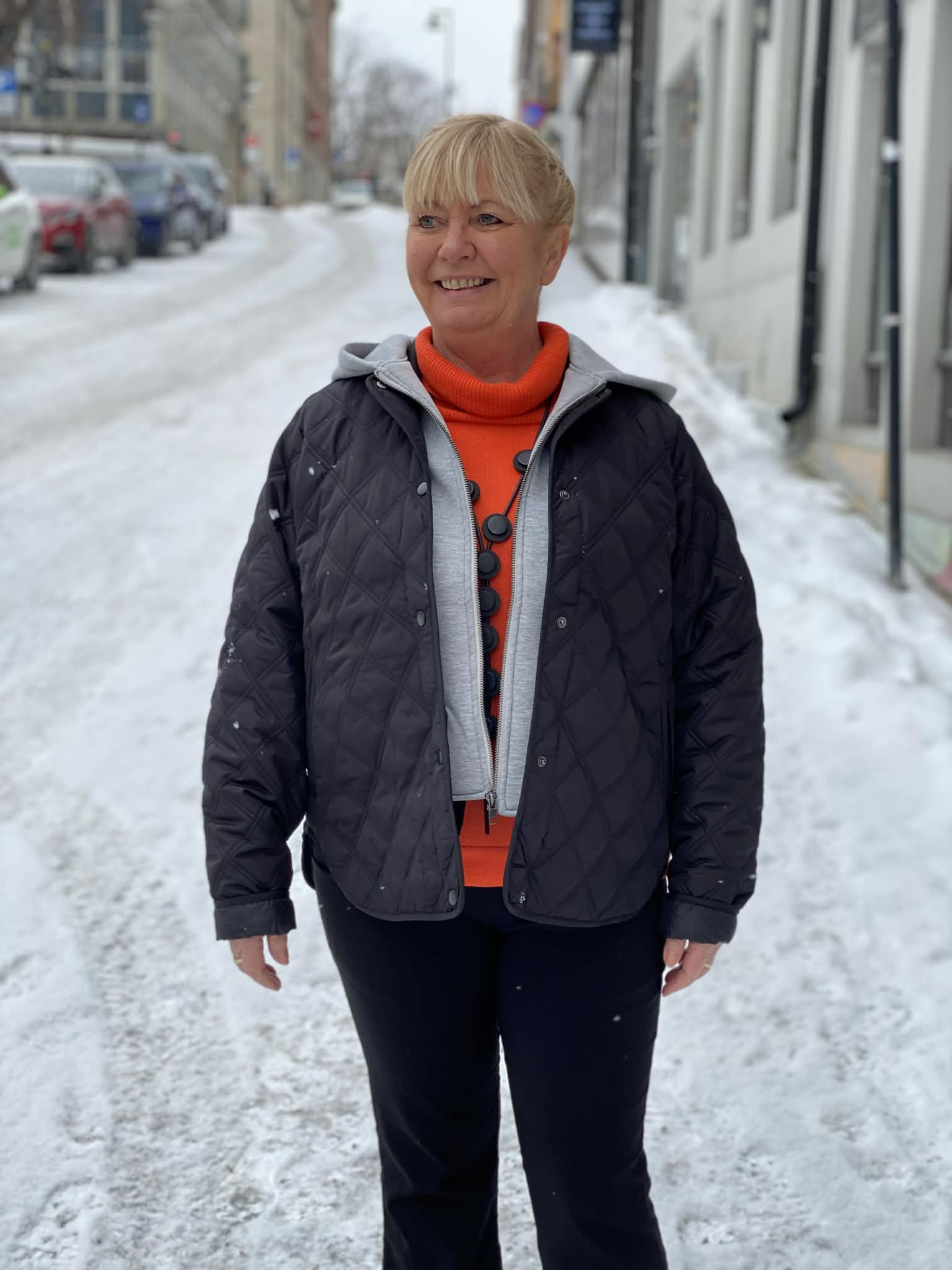 Beskrivelse SC-FENYA 75. Denne jakken har et quiltet mønster, trykknapper og en påsydd hette. Den passer godt til uformelle antrekk og gir et ekstra lag med varme. Rygglengde i cm: S 68, M 68, L 72, XL 72, XXL 74 - Brystmål i cm: S 110, M 116, L 123, XL 131, XXL 139 - Nederste kant i cm: S 114, M 120, L 127, XL 135, XXL 143 |