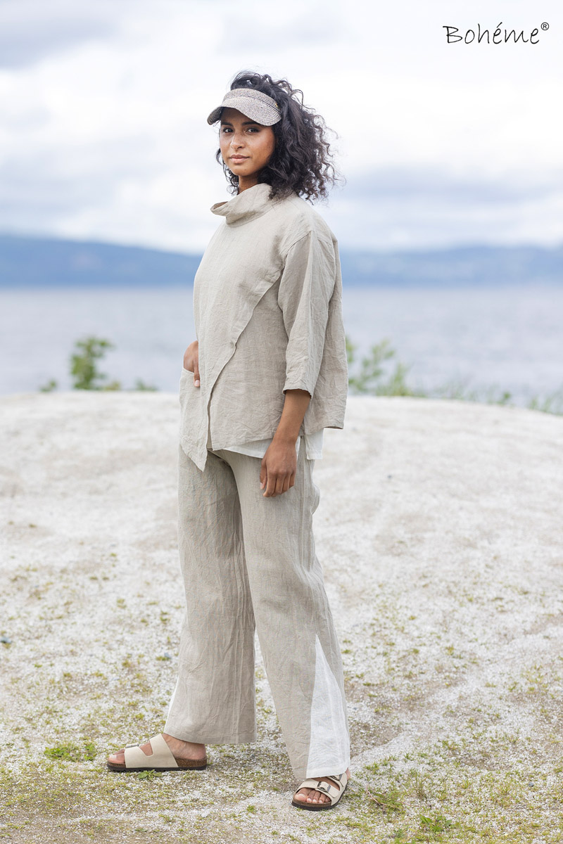 Tøff genser med asymmetrisk design- Laget i 75%Lin og 25% Bomull.