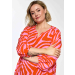 Beskrivelse GLea-kjole – G262068 En lett og romslig kjole med et avslappet utseende. Modellen har en løs silhuett som faller mykt rundt kroppen og gir god bevegelsesfrihet. Kjolen er designet med rund hals og korte ermer, noe som gir et enkelt og praktisk snitt. Lengden går under kneet og skaper et mykt fall i skjørtet. Detaljer inkluderer: Rund hals Korte ermer Løs og romslig passform Midi-lengde Helgjennomsiktig mønster med grafisk uttrykk Materialet har et lett og glatt fall med en myk overflate, noe som gir god komfort og et behagelig uttrykk når den brukes. Materiale: 100 % viskose |